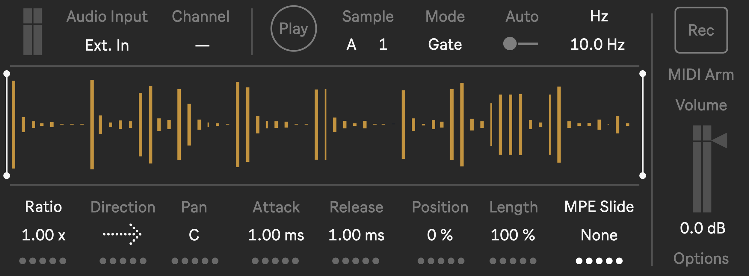 Catch is a simple monophonic performance sampler that allows live audio to be captured for instant playback and manipulation. This instrument was designed for performance and features an innovative sample bank system and many variation tools to spice up your sounds.